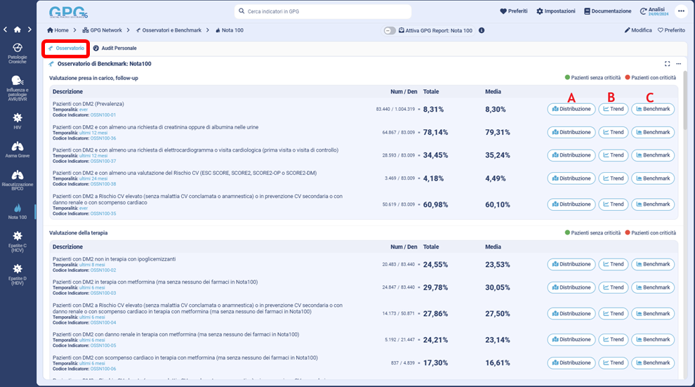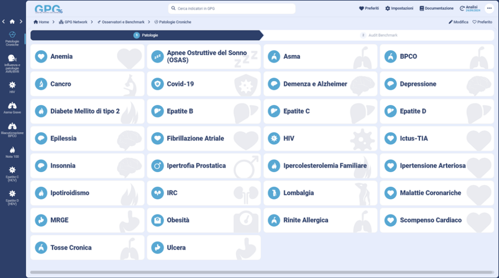 Sezione “Patologie Croniche”: Aggiornamento della sezione Patologie Croniche (precedentemente Audit Benchmark), all’interno del nuovo modulo Osservatori e Benchmark