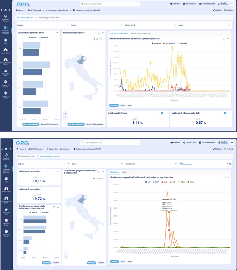 Il nuovo modulo Osservatori e Benchmark, della sezione GPG Network, permette di effettuare valutazioni clinico-epidemiologiche sui dati dei medici aderenti al Panel GPG, con la possibilità di avere un dettaglio regionale del trend, e di valutazione dei propri Benchmark rispetto ai colleghi del Network.