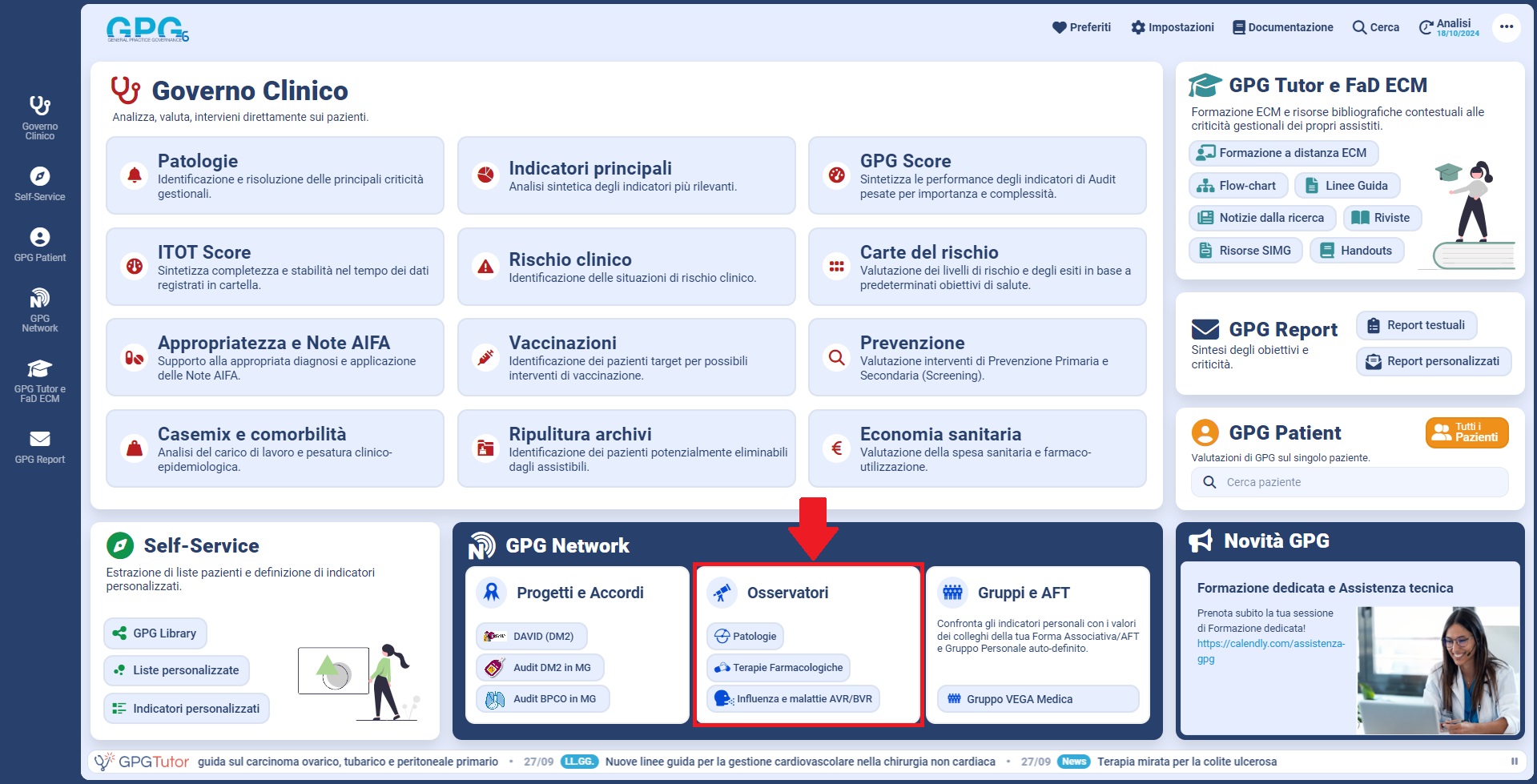 GPG è un innovativo supporto informatico per la valutazione e l’ottimizzazione dei processi di cura; un alleato insostituibile per il Medico di Medicina Generale, offre l’accesso contestuale ai più autorevoli contenuti scientifici e alla formazione medica.