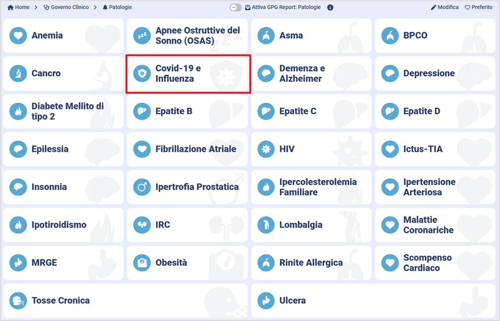 8. Aggiunto il modulo Covid-e Influenza nel Governo Clinico => Patologie