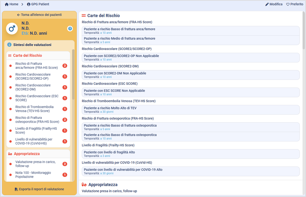 9. Aggiunte le Carte del Rischio nelle sintesi di valutazione del GPG Patient