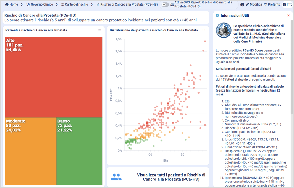 6. Inserimento nella sezione Carte del Rischio del nuovo score PCa-HS Score che permette di stimare il rischio di Cancro alla Prostata a 5 anni nei pazienti di età >= 45 anni.