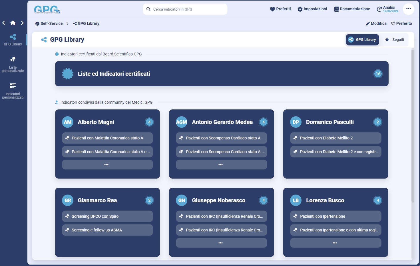 - 4. GPG Library: possibilità di condividere il proprio lavoro (liste pazienti/indicatori) con altri medici, diventando così patrimonio comune di tutti gli altri strumenti di GPG.