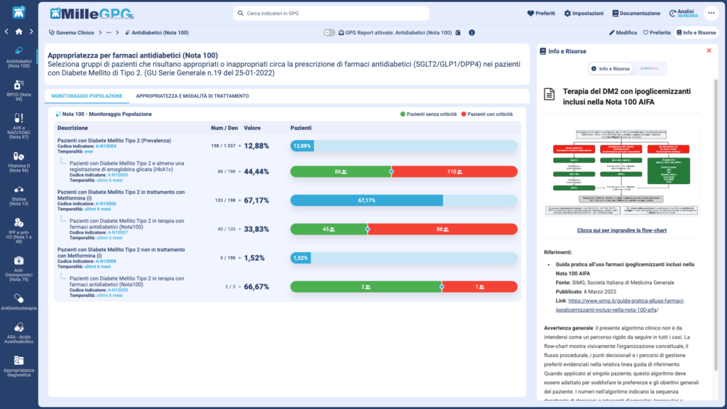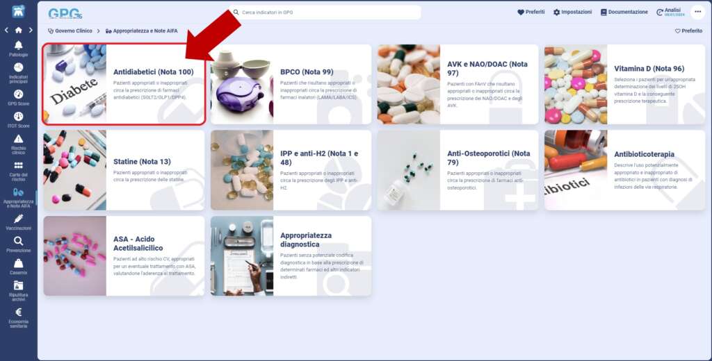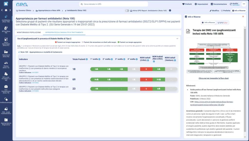 Lo strumento GPG nella sezione Antidiabetici (Nota 100) del Modulo Appropriatezza terapeutica.