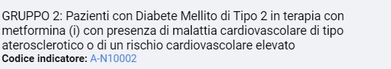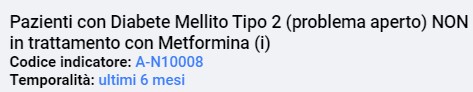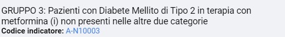 identifica i pazienti non trattati con metformina che assumono i farmaci della Nota 100; i pazienti con criticità sono pazienti che non assumono metformina né i farmaci innovativi e probabilmente sono in terapia con altri antidiabetici, forse anche sulfaniluree: potrebbero non essere compensati e pertanto andrebbero rivalutati.