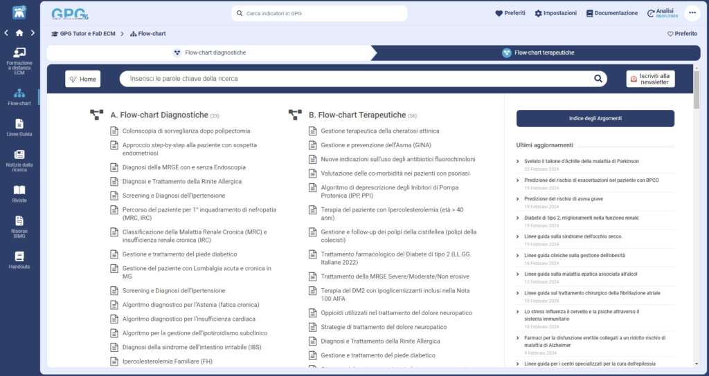 MediTutor rende disponibili Linee guida, Flow-chart terapeutiche, notizie della ricerca, articoli scientifici, opuscoli, Relazioni congressuali, riviste, letteratura EBM tutte aggiornate in tempo reale oltre a materiale informativo da consegnare al paziente.