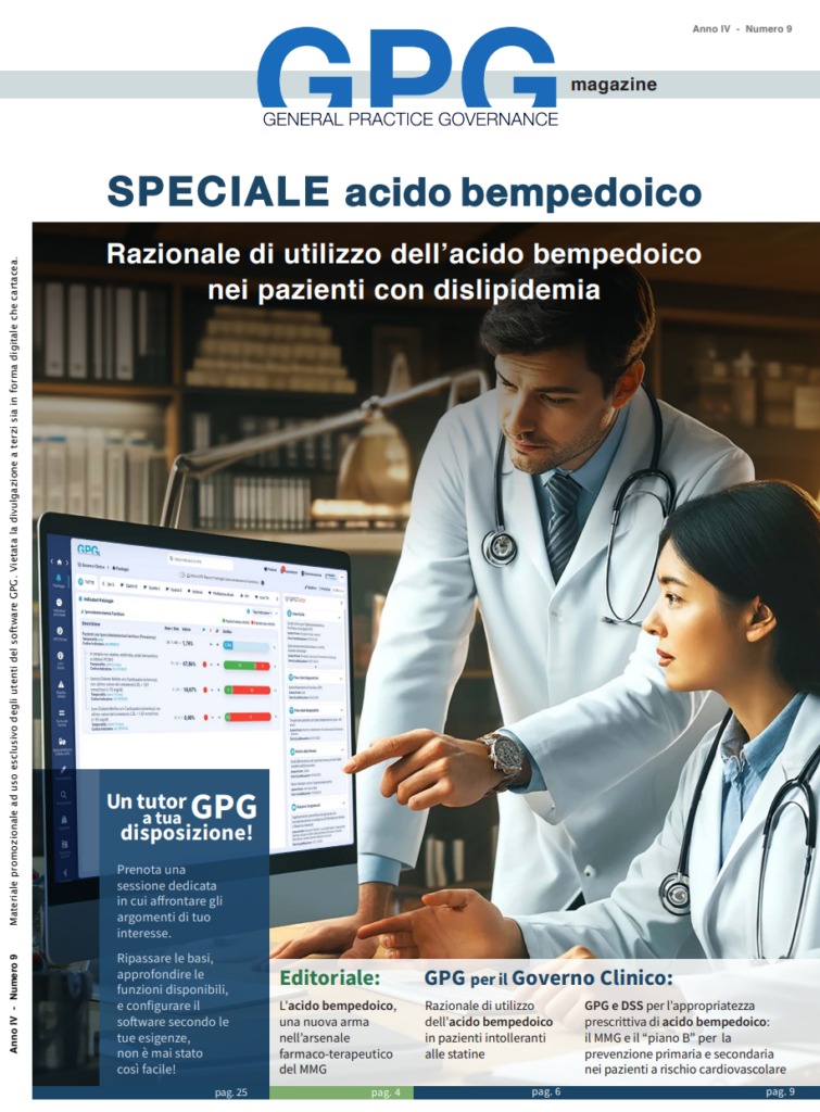 Questo numero speciale di GPG Magazine è dedicato all’acido bempedoico come nuova opzione terapeutica nella gestione della dislipidemia in Medicina Generale, con particolare attenzione ai pazienti intolleranti alle statine o non adeguatamente controllati.